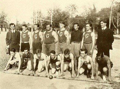 Second team (Scrub) basketball captain, Fred Stringfellow (with ball), Gainesville High School, 1915-16.