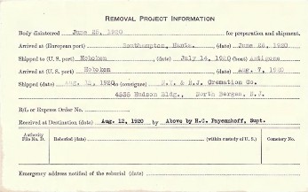 On June 25, 1920, Cadet DeGarmo’s body was disinterred and shipped from Southampton, England aboard the U.S. Army Transport Antigone to Hoboken, New Jersey, arriving at North Bergen, New Jersey on August 12, 1920. He was reburied in a plot reserved for his mother’s family in Riverview Cemetery in Trenton.