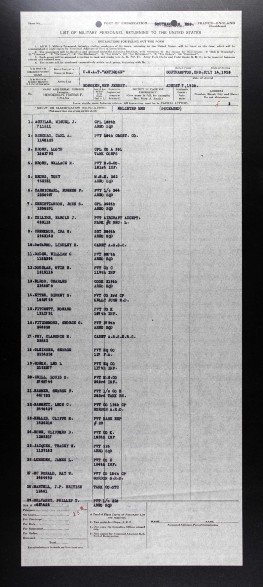 Manifest of the USAT Antigone carrying the flag-draped coffin of Cadet DeGarmo, #10 above, among other deceased enlisted men.