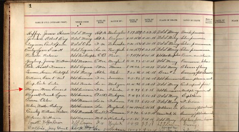 Official U.S. Navy death record of Moses Leonard (Dick) Morgan, USS Louisiana, cause of death: “Multiple injuries.”