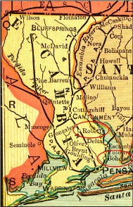 Moses Waters was angry at Dick Morgan. Armed with a Winchester rifle, he sent word to Morgan to meet him at Crow Bridge, on Coldwater Creek, about 13 miles from Milton, Florida. After Morgan refused to retract what he had said about him, Waters fired at Morgan, killing him outright, the ball entering two inches above his navel. After the shooting that occurred on Monday, June 10, 1889, Waters fled. Sheriff William Jackson Johnson of Milton described Waters “as a kind of Bohemian in his habits, having no particular home, and a very dangerous man.” Still at large, the 72-year-old former Confederate deserter was “a natural woodsman,” which led Sheriff Johnson to believe that he would never be apprehended. Morgan, age 42, who was also a Confederate veteran, wounded at Dallas, Georgia, July 28, 1864, was married and a father of 13 children, ranging in ages from 17 to 2. But on July 6, the sheriff of adjacent Washington County succeeded in capturing Waters after all and turned him over to Sheriff Johnson, who placed him in the Santa Rosa County jail without bond awaiting trial. On October 18, 1889, a jury found Waters guilty of first-degree murder, and he was sentenced to life in the Florida State Prison in Raiford. He died while in custody on February 22, 1890.