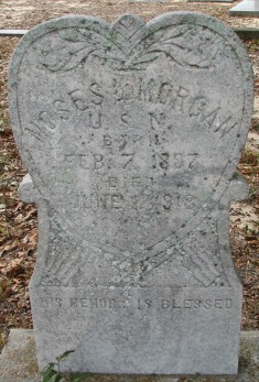 In 1910, the Morgans were living in the Old Roberts community, where Len, age 57, was doing “odd jobs” and so was Scott, age 22. Completing the household were Georgiana, age 50, and Dora, 19, Rhoda, 15, and Moses (Dick), age 12, none of whom were attending school. The following year Dora married Jesse Lee Reynolds (1890-1938), who also worked at the Pensacola Tar & Turpentine plant and at the time of his death was superintendent of the Southern Pine Extracts Company of Pensacola. And in 1916 Rhoda wed Private First-Class Luther Furman Stone (1897-1965), of Pembroke, North Carolina, who had enlisted in the Regular Army in 1914 and was a radio operator stationed at Fort Barrancas, located on a hilltop overlooking Pensacola Bay. Stone would be sent to France on August 25, 1917, and remain overseas until February 3, 1919. After he was honorably discharged as a Radio Sergeant in September 1920, he worked for the U.S. Customs Service, Border Patrol, in St. Augustine and Miami, and Houston, Texas.